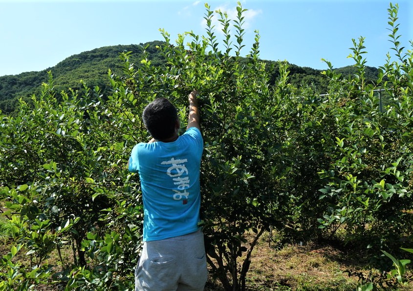 R5.6/28の農園 植付3年目の木は小さいです 右奥に7年目の木があります
