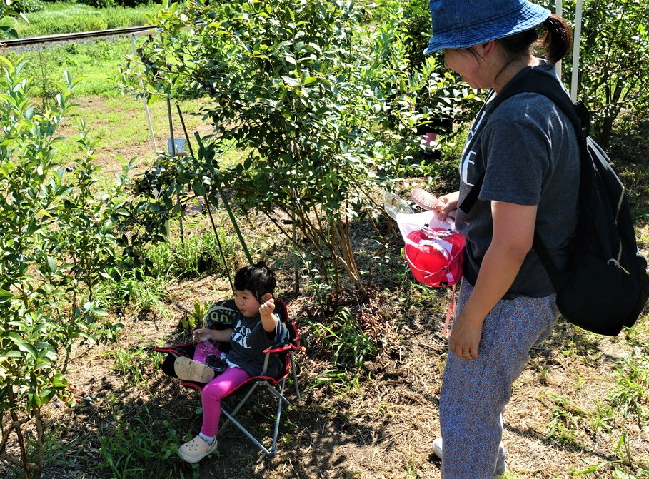 2歳の子供は・・簡易チェアがお気に入り。帰りの車内でbベリーを "甘い>アマ~イ"と頬ばっていたそうです