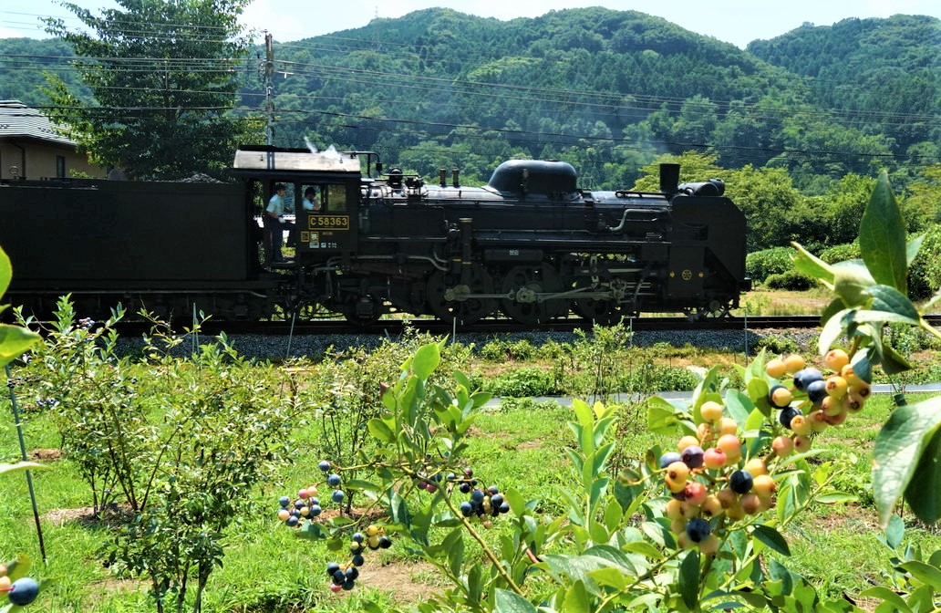 8/4 暑い夏! C58パレオ君が、美味しくなったブルーベリーを横目に・・
