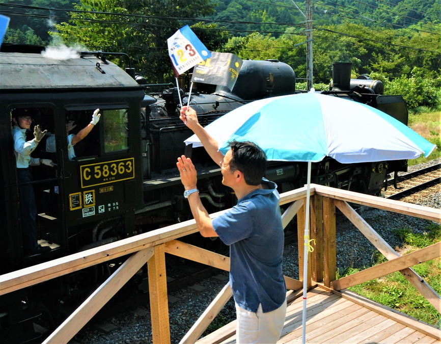 R5.8/18 帰りのC58パレオ君に旗を振って、見送ったヨ --4/4